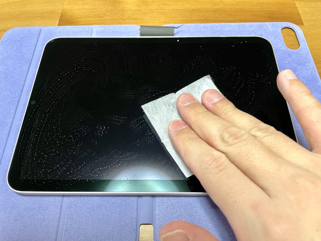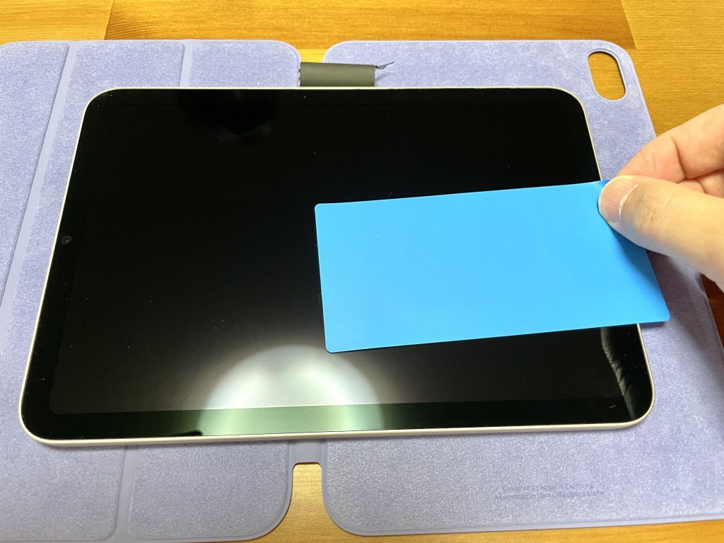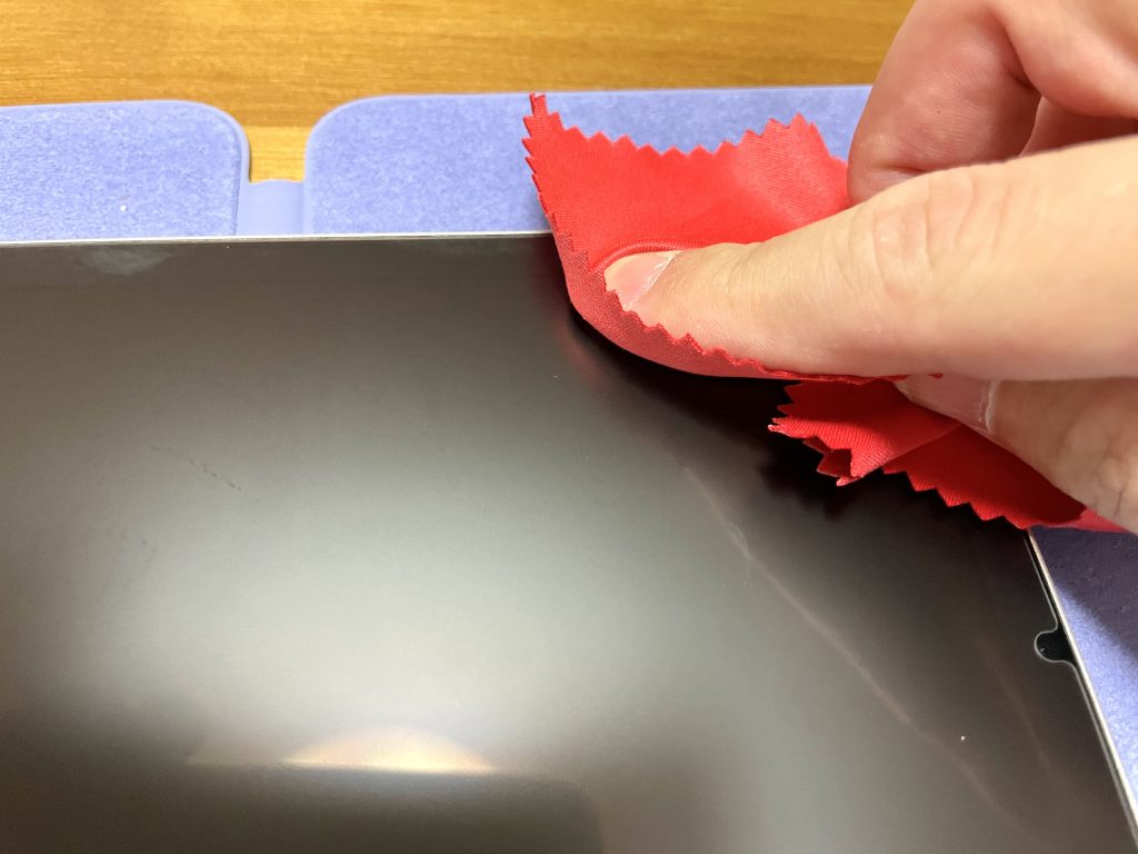 iPhoneだとNIMASOのガラスフィルムが貼り付けガイドをつけてくれることで有名なんですが、NIMASOですらiPad用の貼り付けガイドはついてこないです。